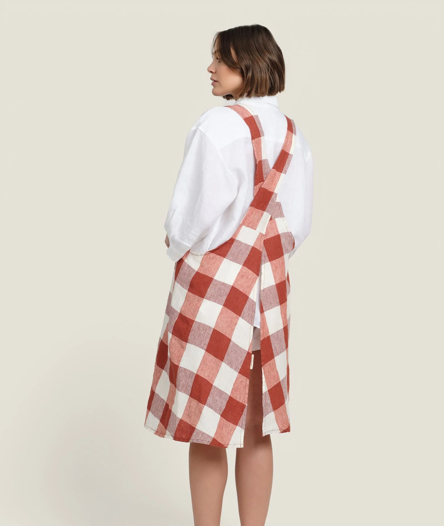 Introducing our must-have 100% linen Apron in Paprika: the ultimate kitchen essential. With a large front pocket and a cross-over design on the back, this apron is set to become your go-to item for all culinary adventures. It is very easy to get into - just pull it over your head and there is plenty of room to feel flexible. Made from premium French linen and delivered in a reusable linen bag.